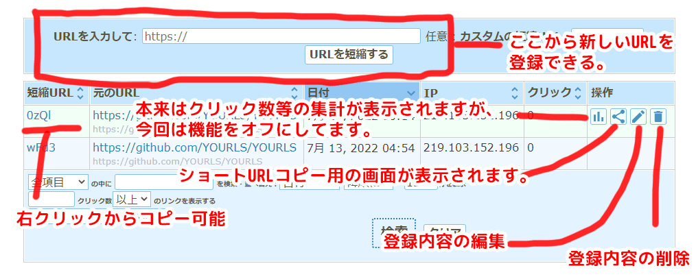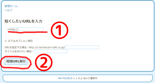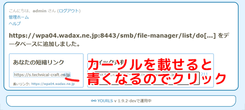 「短縮URL発行ボタン」を押すとこの画面に切り替わる。